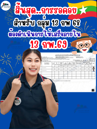 อัปเดตล่าสุด กลุ่มแรงงานเมียนมา ใบอนุญาตหมดอายุ 13 ก.พ. 68