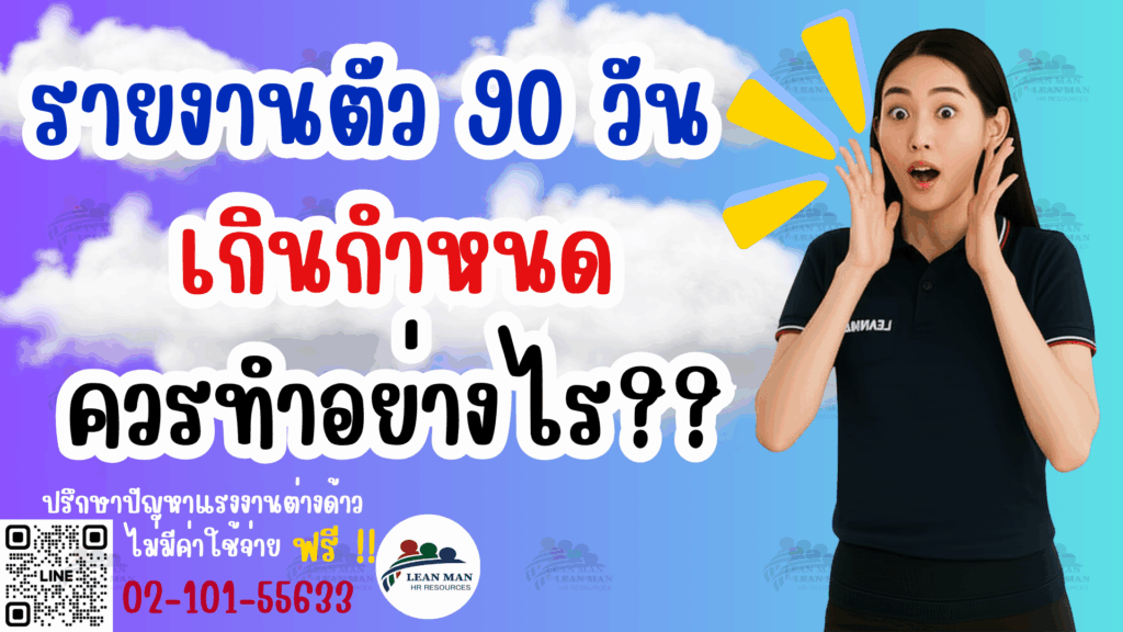 แรงงานต่างด้าวที่ รายงานตัว 90 วันเกิน จะต้องเสียค่าปรับ และอาจมีผลกระทบต่อการอยู่ในไทยอย่างถูกกฎหมาย ทางที่ดีที่สุดคือรีบไปดำเนินการรายงานทันที และควรเตรียมตัวล่วงหน้าเพื่อไม่ให้เกินกำหนดอีก